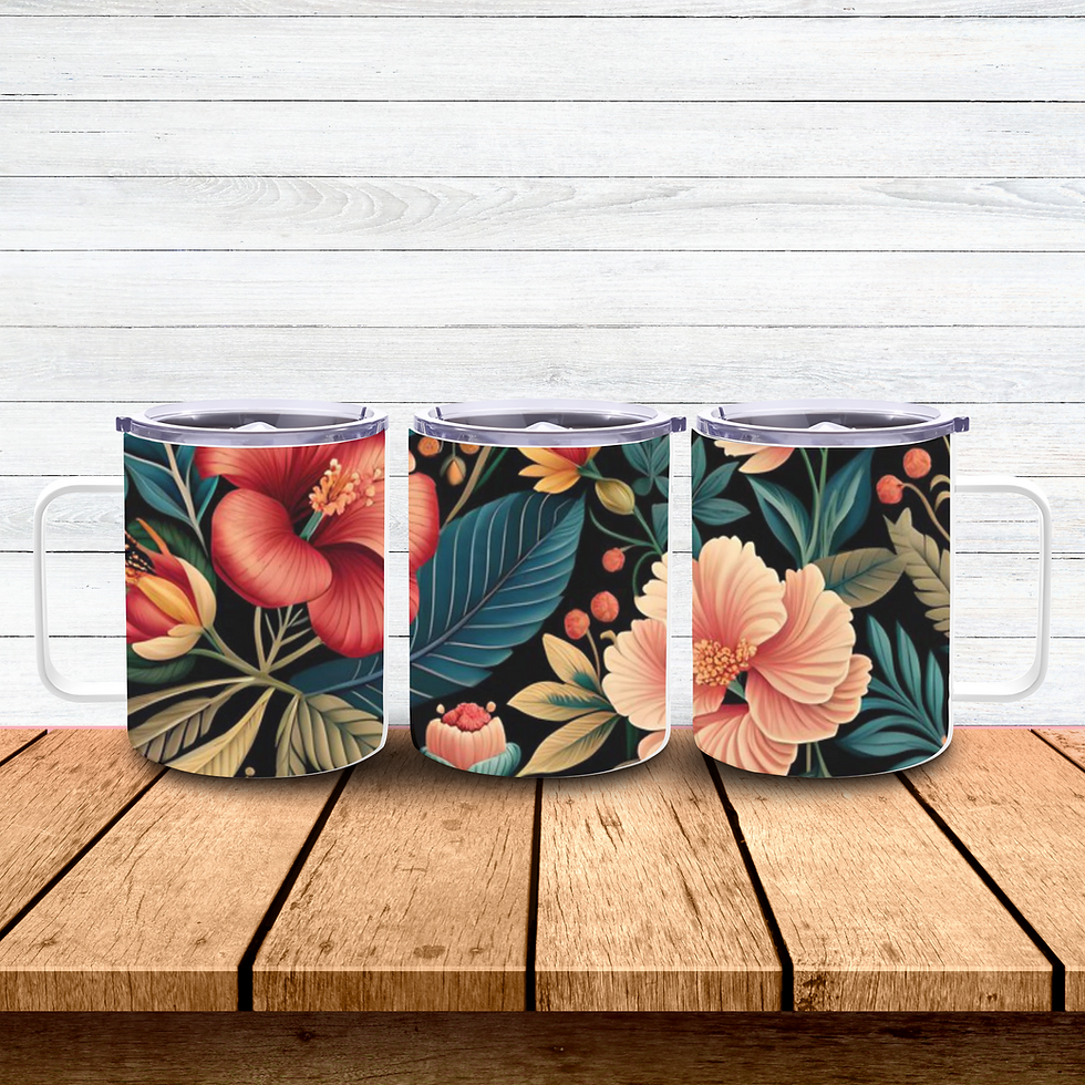 Black Floral Stainless Steel Mug